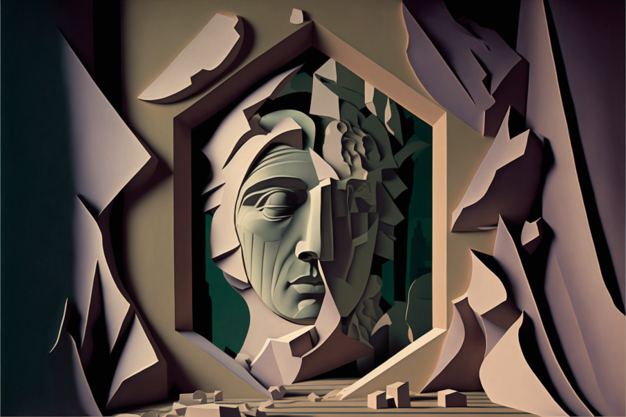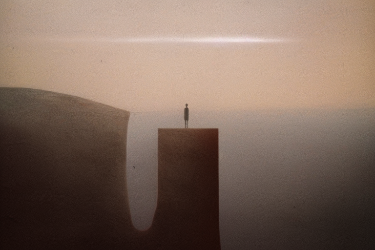 I will now attempt to go beyond words to describe my experience of depersonalisation by drawing on the latest (at the time of writing [not for long!]) AI-image generation tools. In this exercise I am fully prepared to fail, but the mission is only to get closer to experience, to go beyond the outline in my first passage that relies on language alone. By doing so, I hope to achieve two things: firstly, to convey the experience to others more effectively, and secondly, to gain a better understanding of the experience myself, which can aid introspection and integration.